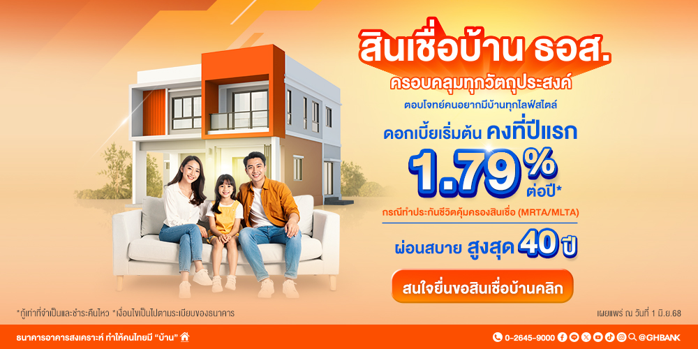 หรือติดต่อได้ที่ ธอส. ทุกสาขาทั่วประเทศ และสอบถามข้อมูลเพิ่มเติมได้ที่ G H Bank Call Center : 0-2645-9000